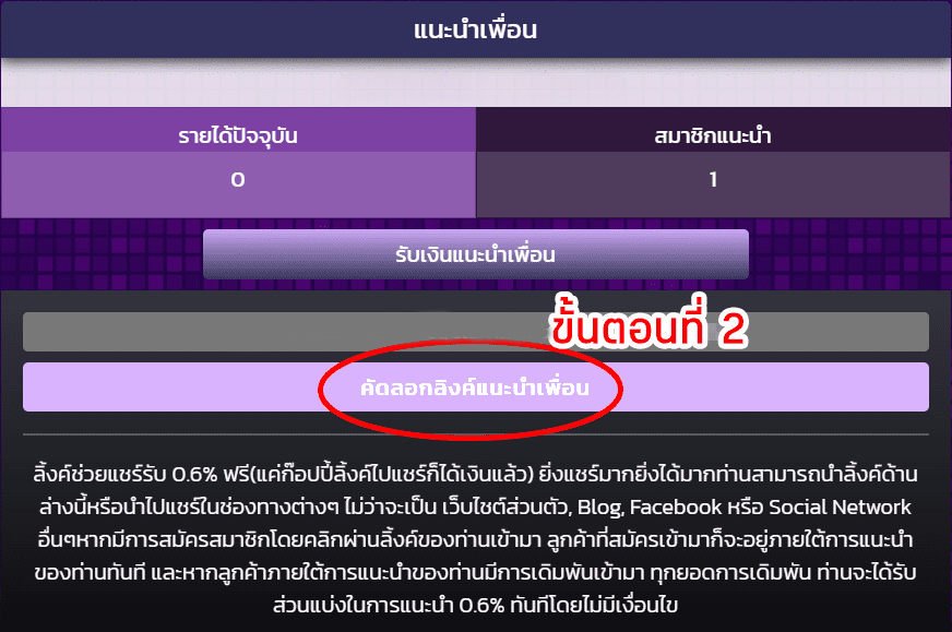 2. "คัดลอกลิงค์แนะนำเพื่อน" แล้วนำไปแชร์ต่อ